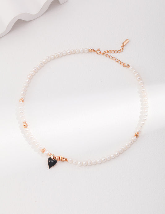Pure Silver Natural Pearl Choker with Classic Love Elements Design